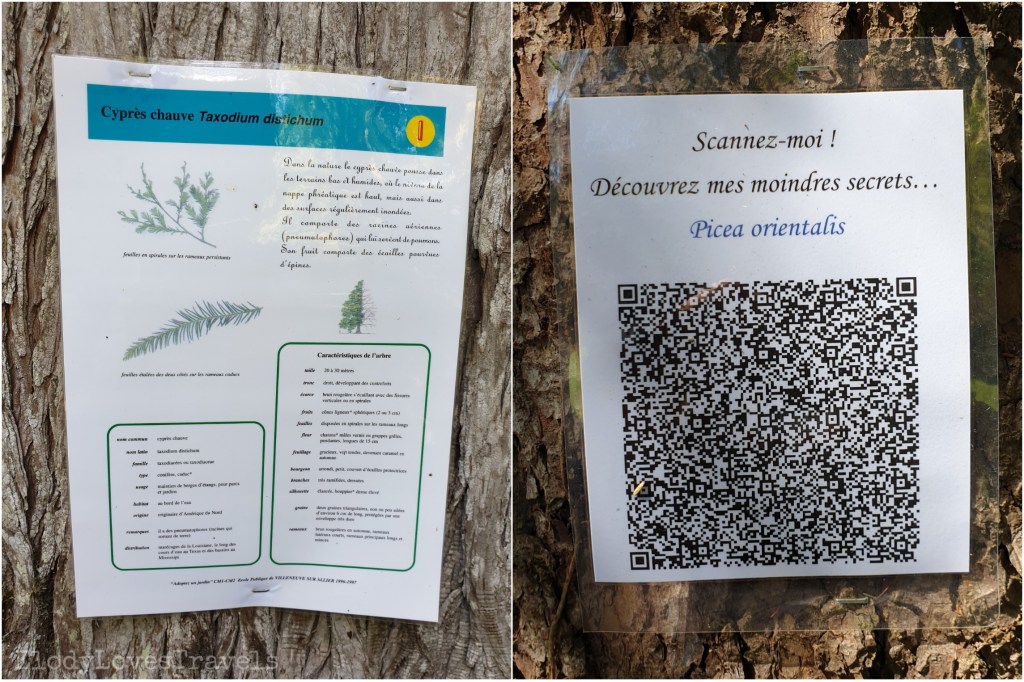 Des QR codes que vous scannez avec votre smartphone, présents sur certains arbres par exemple, vous permettent d’en apprendre plus sur ces végétaux, des affichettes également vous raconte l’Histoire de l’arboretum ou vous détaille les caractéristiques d’une plante.