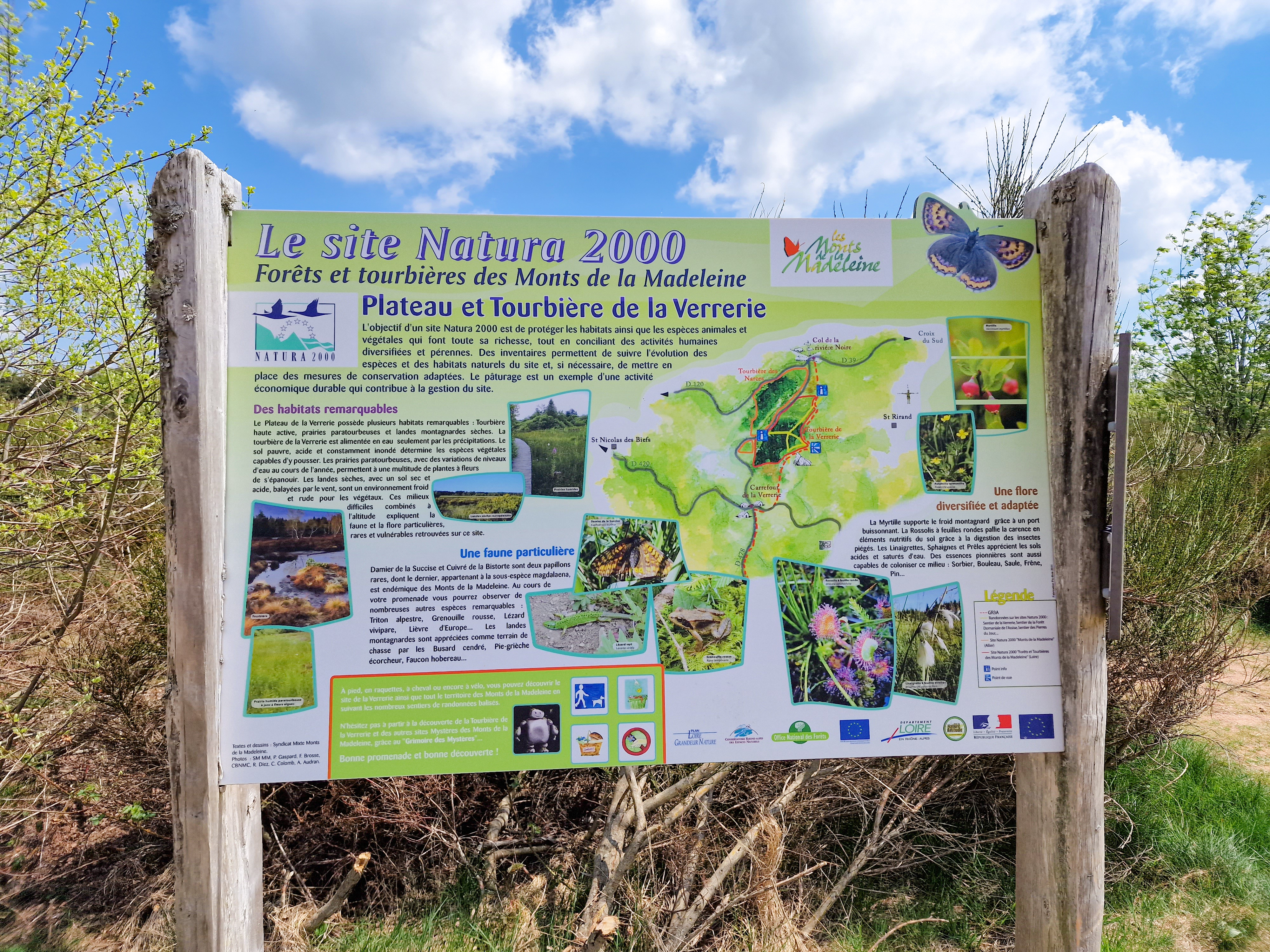 Après quelques minutes de marche au milieu d’une tourbière et de pins rappelant des paysages du sud de la France, nous avons pu, depuis la table d’orientation, apprécier une vue exceptionnelle sur la plaine Roannaise et les monts d’Auvergne.