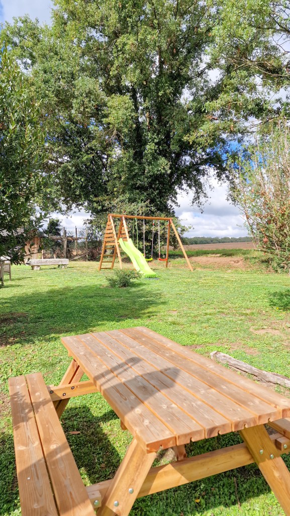Balançoire, table de pique-nique, salon de jardin, plancha, chaises longues et joli parc arboré, les extérieurs ne sont pas en reste. Sachez d’ailleurs que de nouveaux aménagements, dont notamment un coin détente avec hamacs, seront au programme pour la saison 2023.