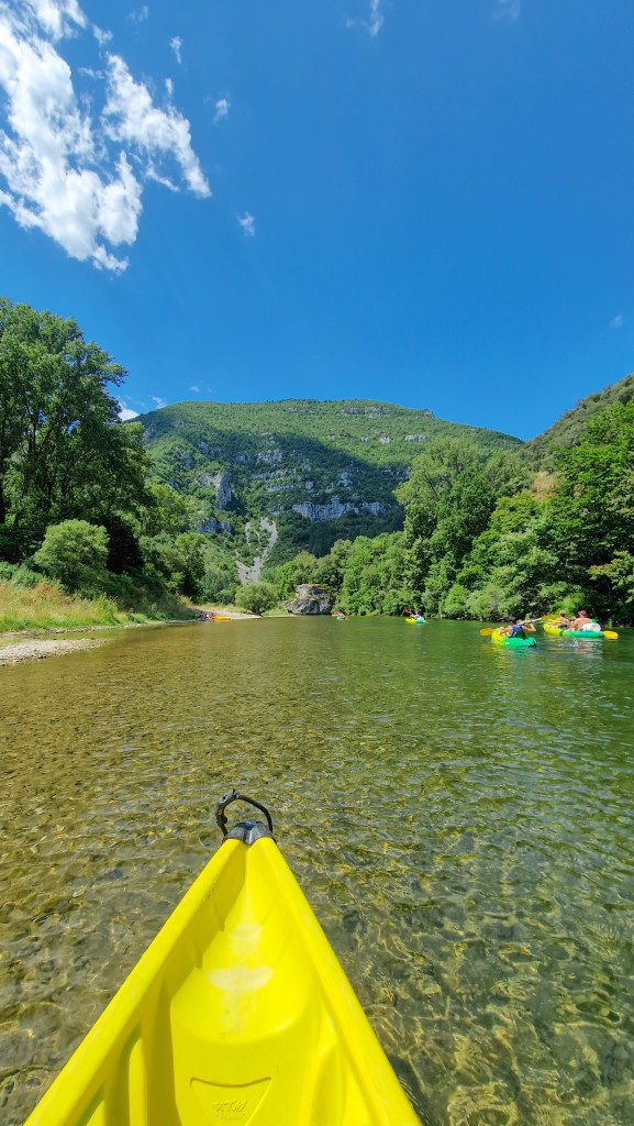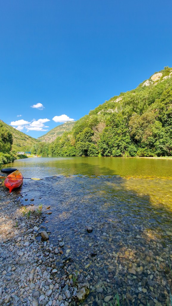 Après avoir dégusté nos viennoiseries commandées la veille, nous avons décidé de réserver une randonnée en canoë. Le camping Le Gabitou est le point de départ d’une descente sur le Tarn de 10km proposée par l’agence Le Soulio. Etant client du camping nous avons bénéficié d’une petite ristourne sur notre location de canoë 😉