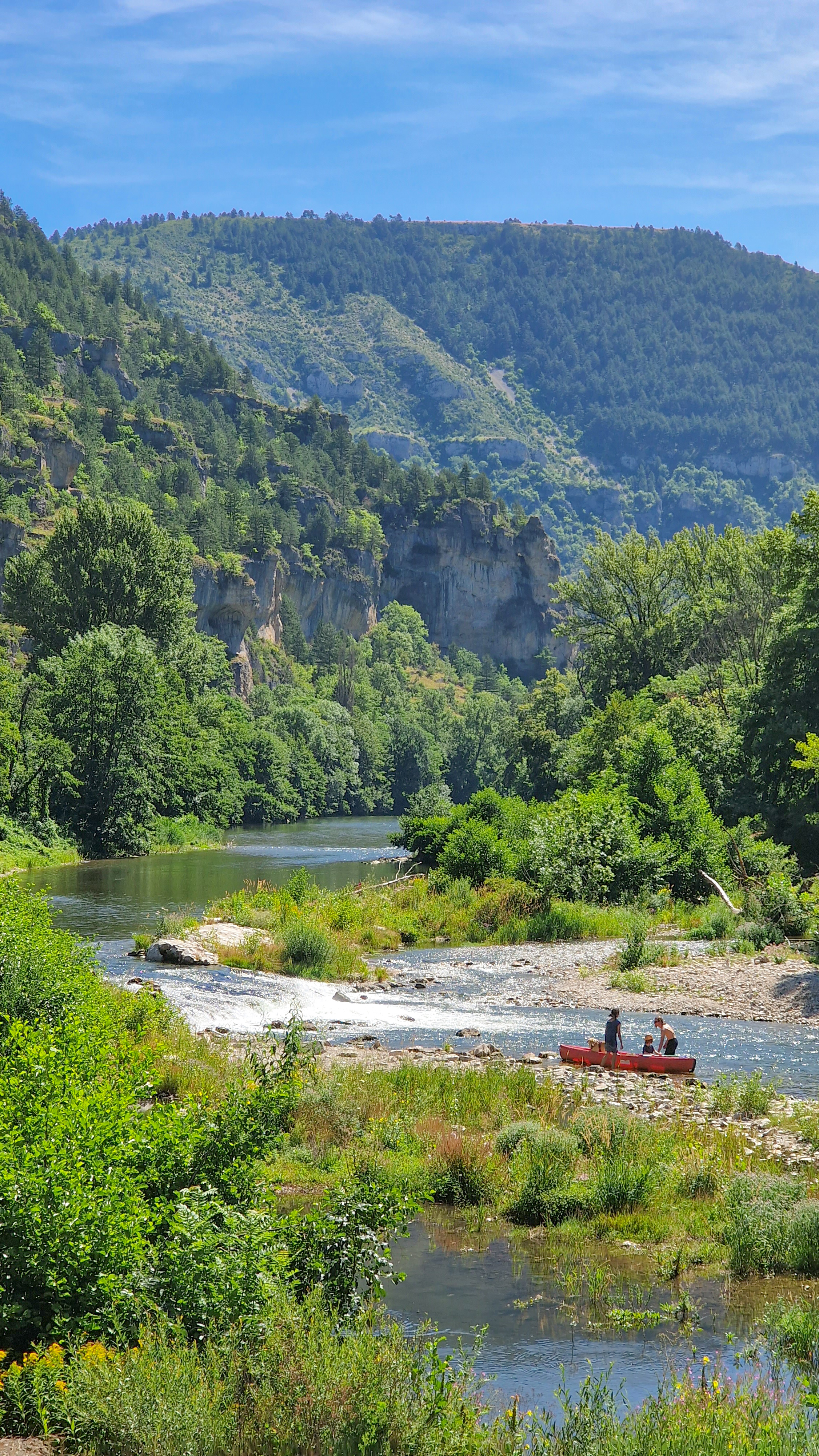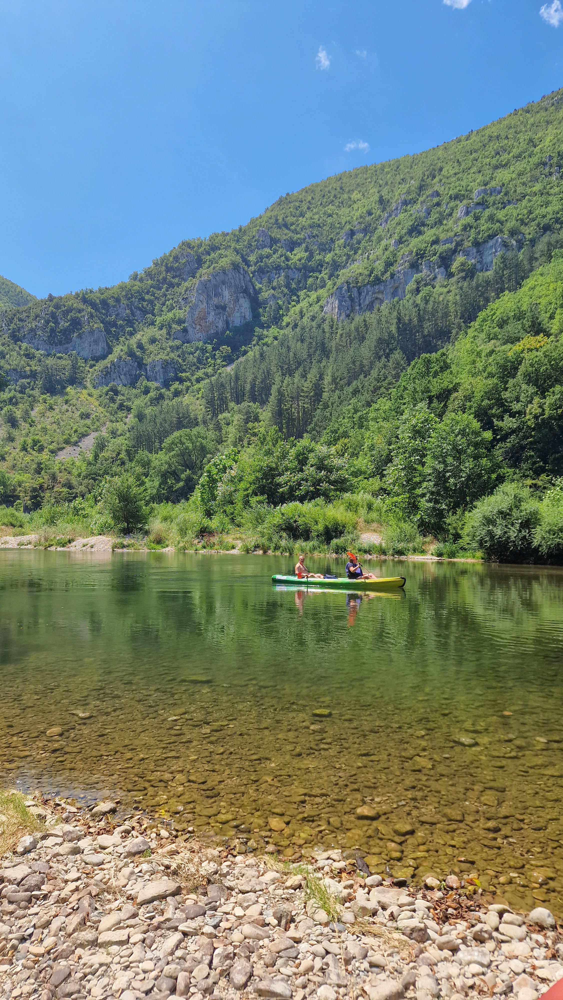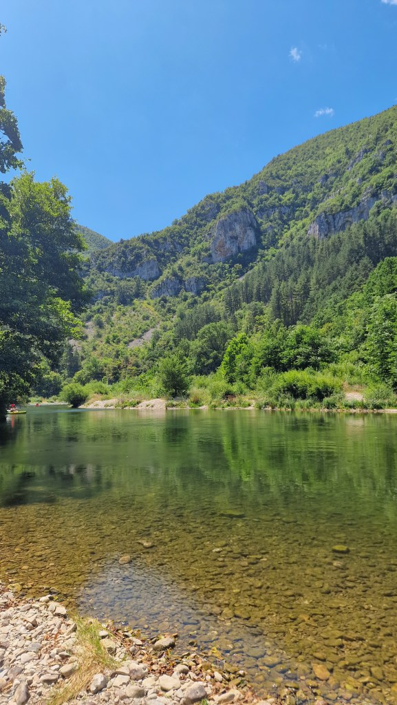 Une navette nous a remonté jusqu’au camping pour le départ. Ensuite libre à nous de mettre le temps que nous souhaitions pour redescendre à notre véhicule. 2/3 heures, 1/2 journée ou même une journée complète. Chacun va à son propre rythme, peut s’arrêter à plusieurs reprises pour pique niquer sur une plage de galets, faire une sieste à l’ombre des arbres ou se baigner dans les petites criques naturelles du Tarn.