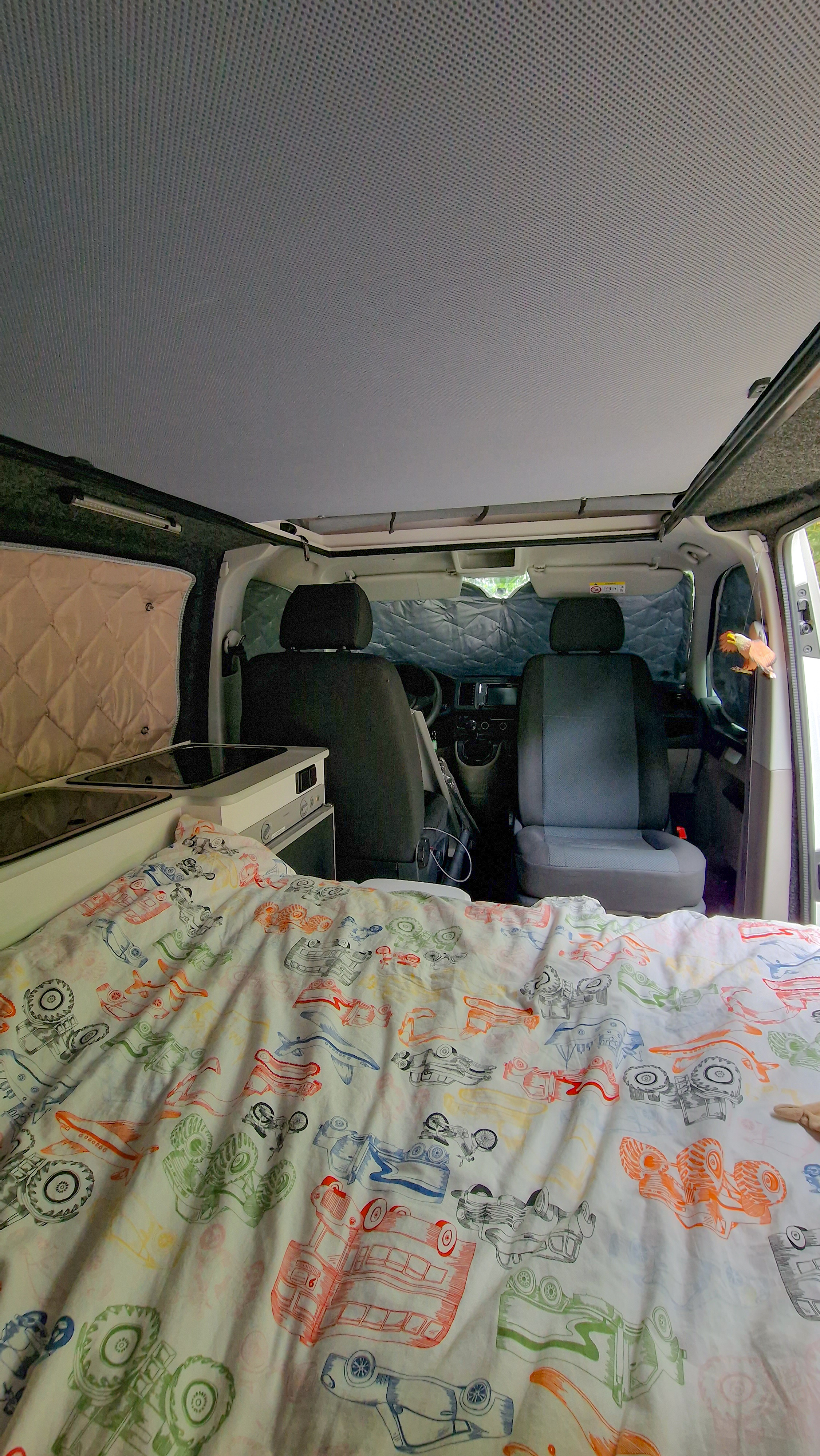 Je vous montre d’ailleurs l’intérieur du van lorsque nous sommes en mode nuit :