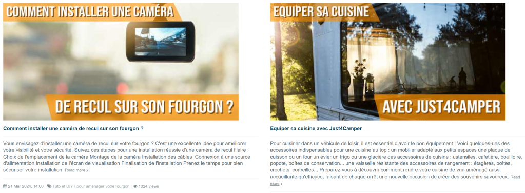 Just4Camper propose sur son site une partie blog des plus complètes avec des articles pratico-pratiques sur des sujets bien précis.