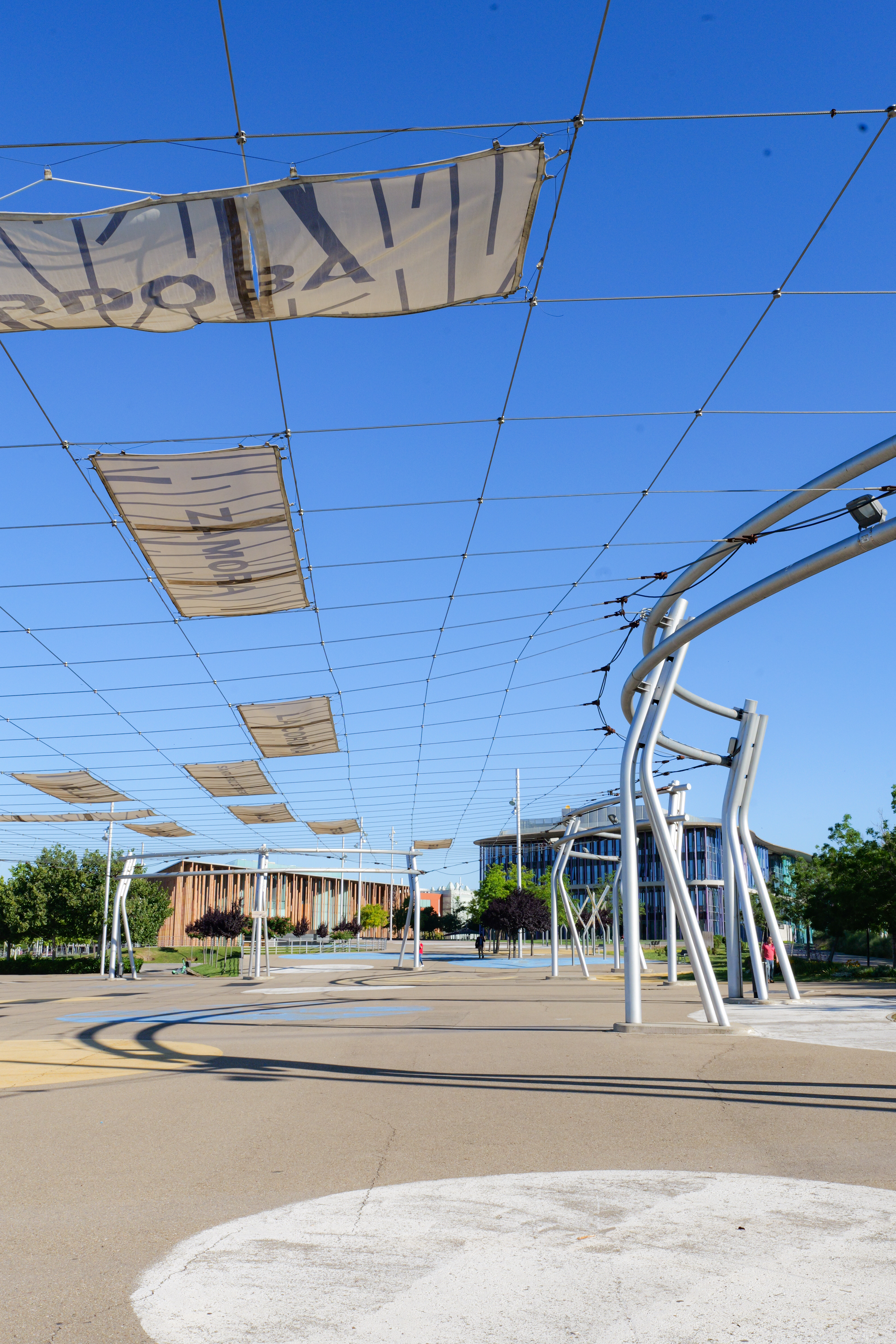 Pour l’occasion, une zone entière de pavillons, espaces d’exposition, zones de loisirs et installations temporaires a été construite durant plusieurs années auparavant sur les rives de l’Ebre, transformant et redynamisant une partie de la ville.