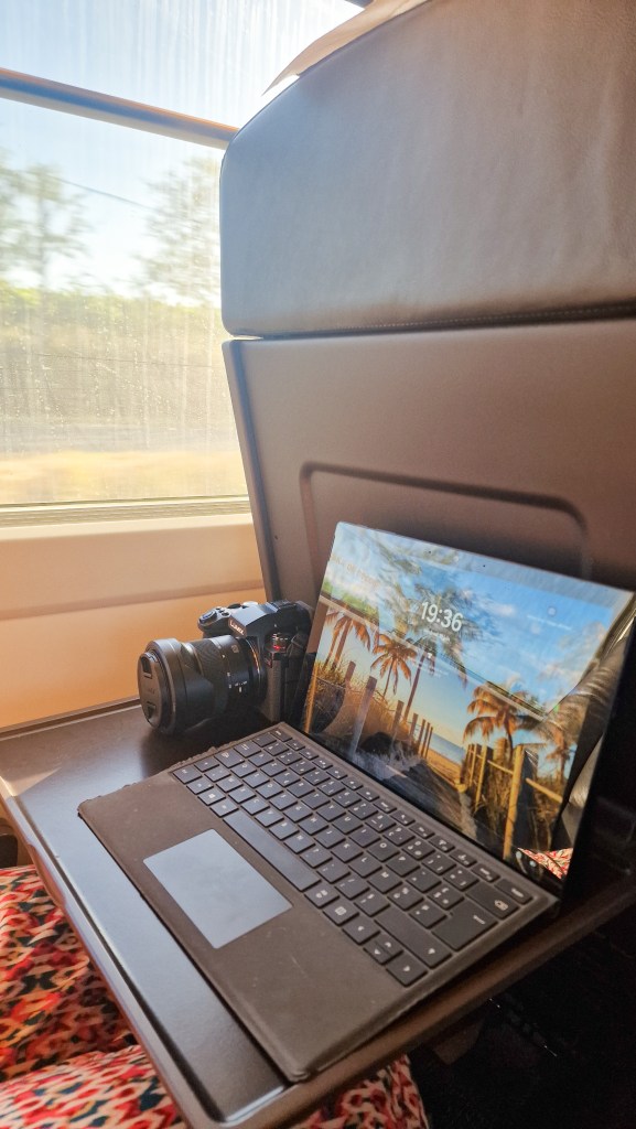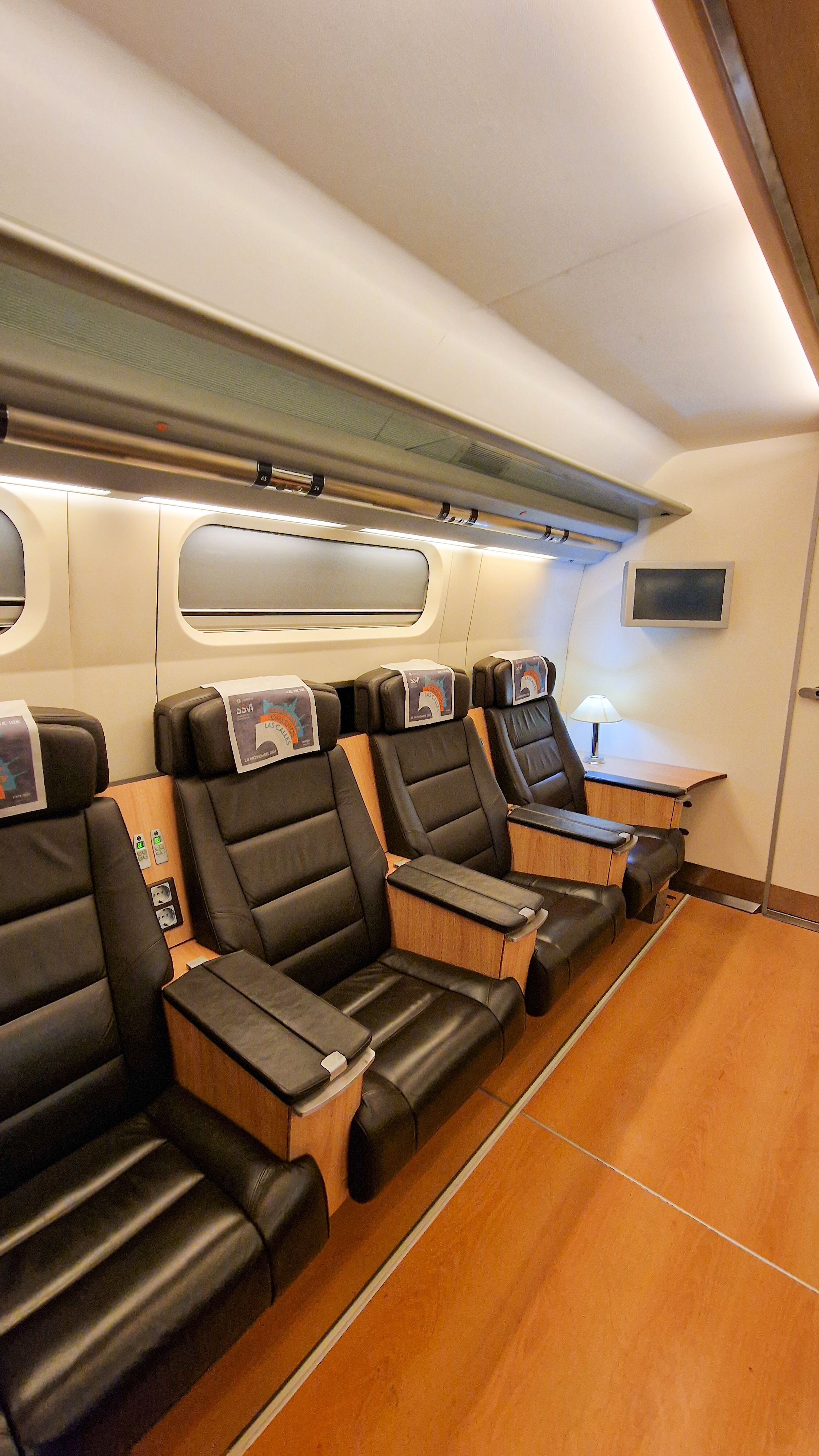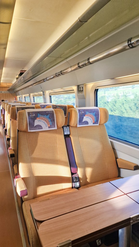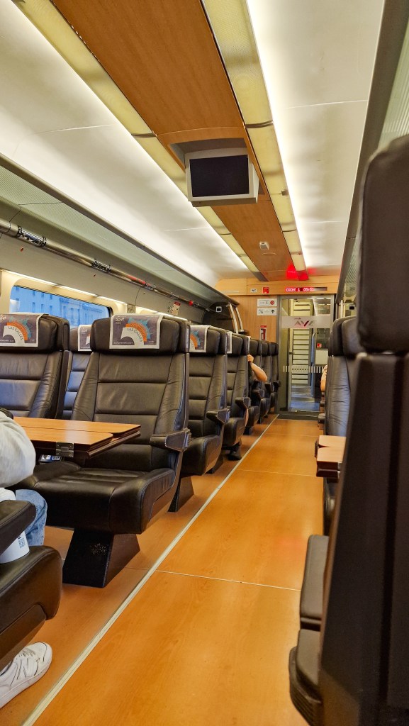 Ayant eu la chance d’être en première classe durant ce séjour, il est très agréable de pouvoir voyager dans des wagons relativement silencieux, aux sièges en cuir larges et confortables et possédant tout le nécessaire pour travailler dans les meilleurs conditions.